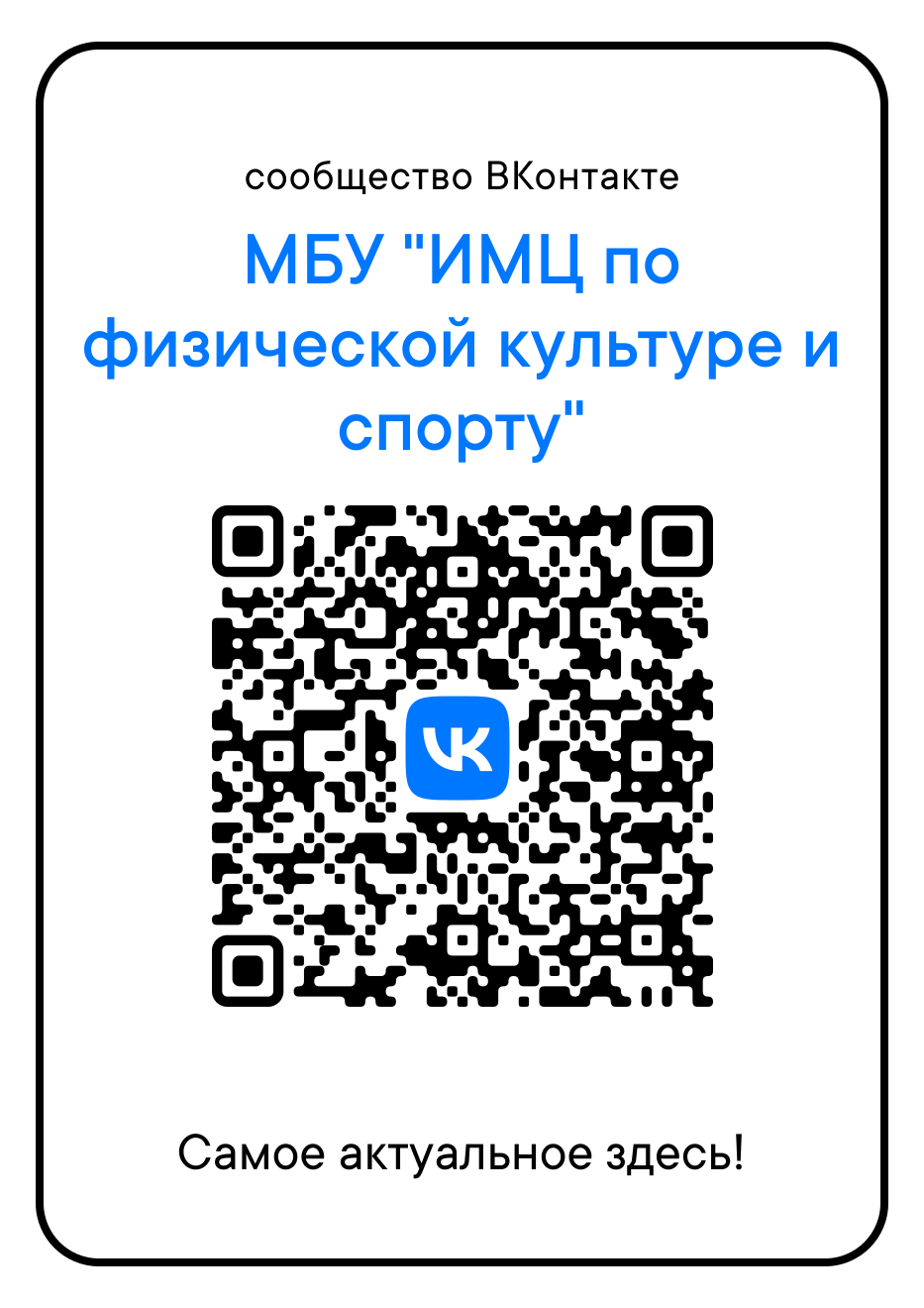 QR-код на официальную страницу МБУ "ИМЦ по ФКиС" в социальной сети ВКонтакте